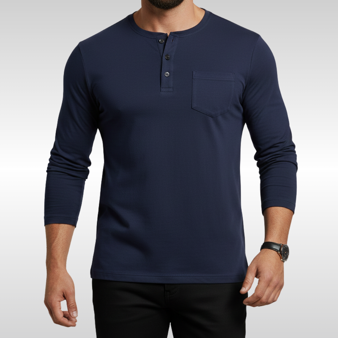 A long sleeve Henley that blends classic appeal with everyday comfort.
